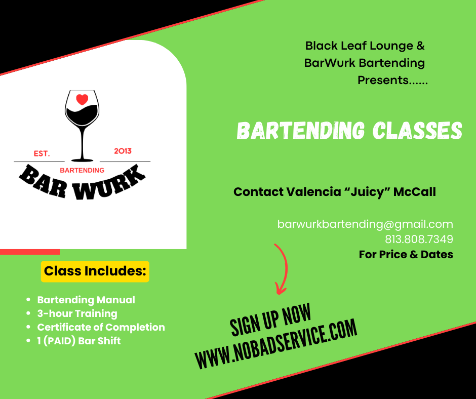 Want to learn the art of cocktail making? Bar Wurk Bartending offers private mixology classes where you’ll discover the essentials of mixing drinks like a pro. Whether you’re looking to start your journey toward becoming a professional bartender or just want a fun interactive experience, we’ll guide you step-by-step. Manual, Certificate, 1 (PAID) - Bar Shift @ Black Leaf Lounge included.